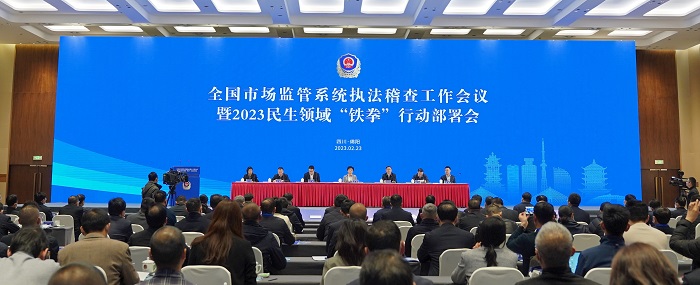 全國(guó)市場(chǎng)監(jiān)管系統(tǒng)執(zhí)法稽查工作暨2023民...  2月23日,全國(guó)市場(chǎng)監(jiān)管系統(tǒng)執(zhí)法稽查工作會(huì)議暨2023民生領(lǐng)域“鐵拳”行動(dòng)部署會(huì)在四川省綿陽(yáng)市舉行。會(huì)議全面貫徹黨的二十大精神,深入落實(shí)全國(guó)市場(chǎng)監(jiān)管工作會(huì)議部署...